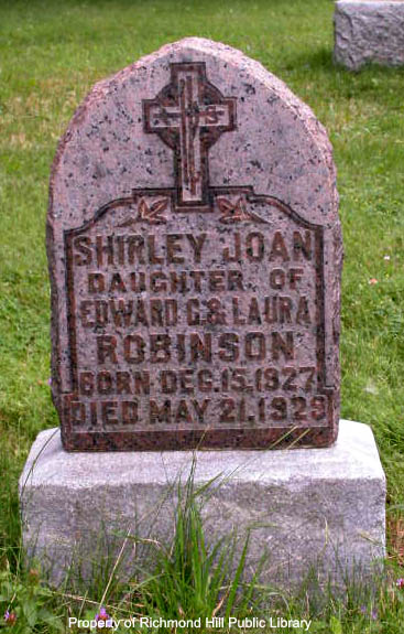 Return to Start This electronic finding aid to the cemeteries serving the population of Richmond Hill is provided courtesy of the Richmond Hill Public Library. |
